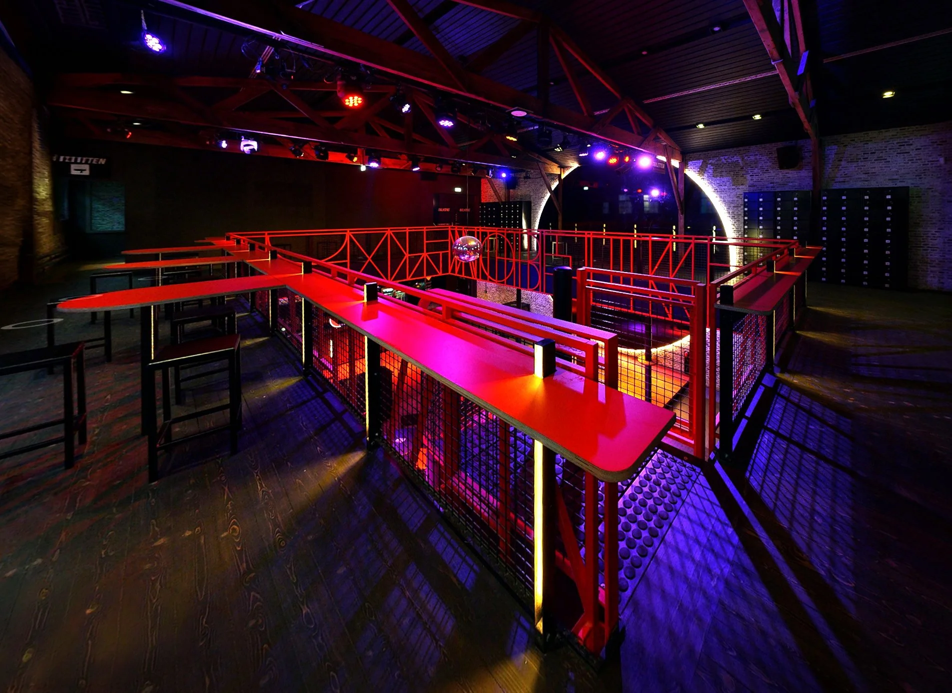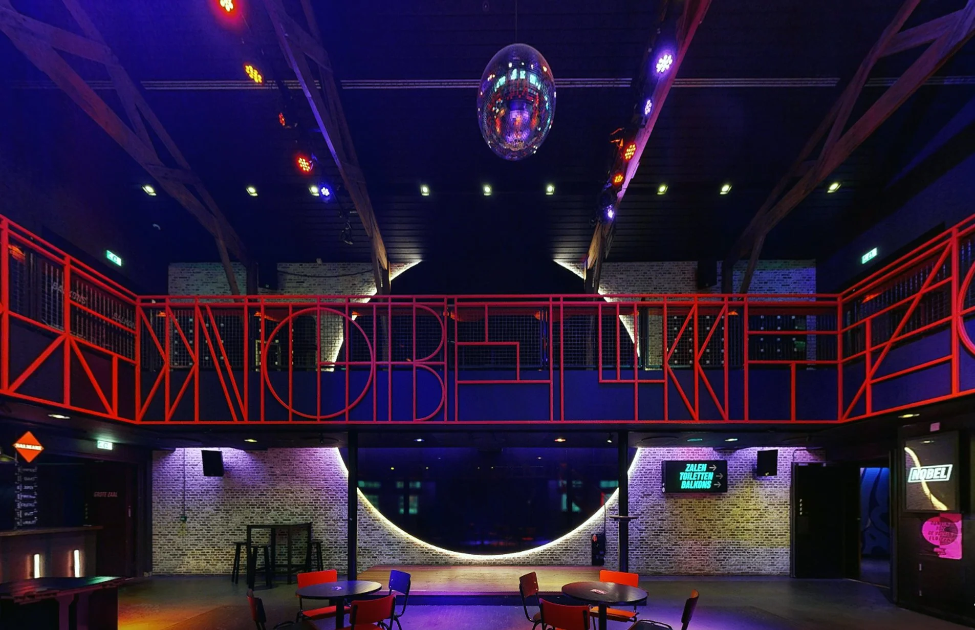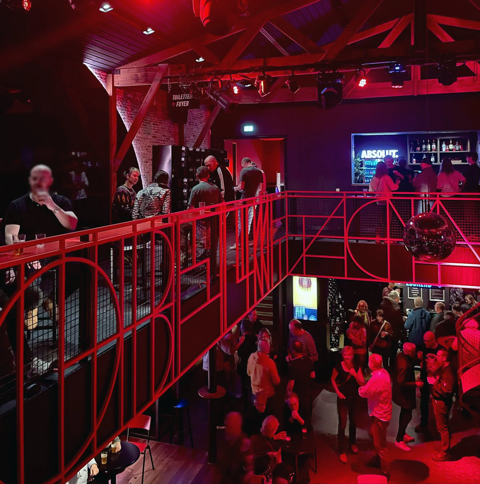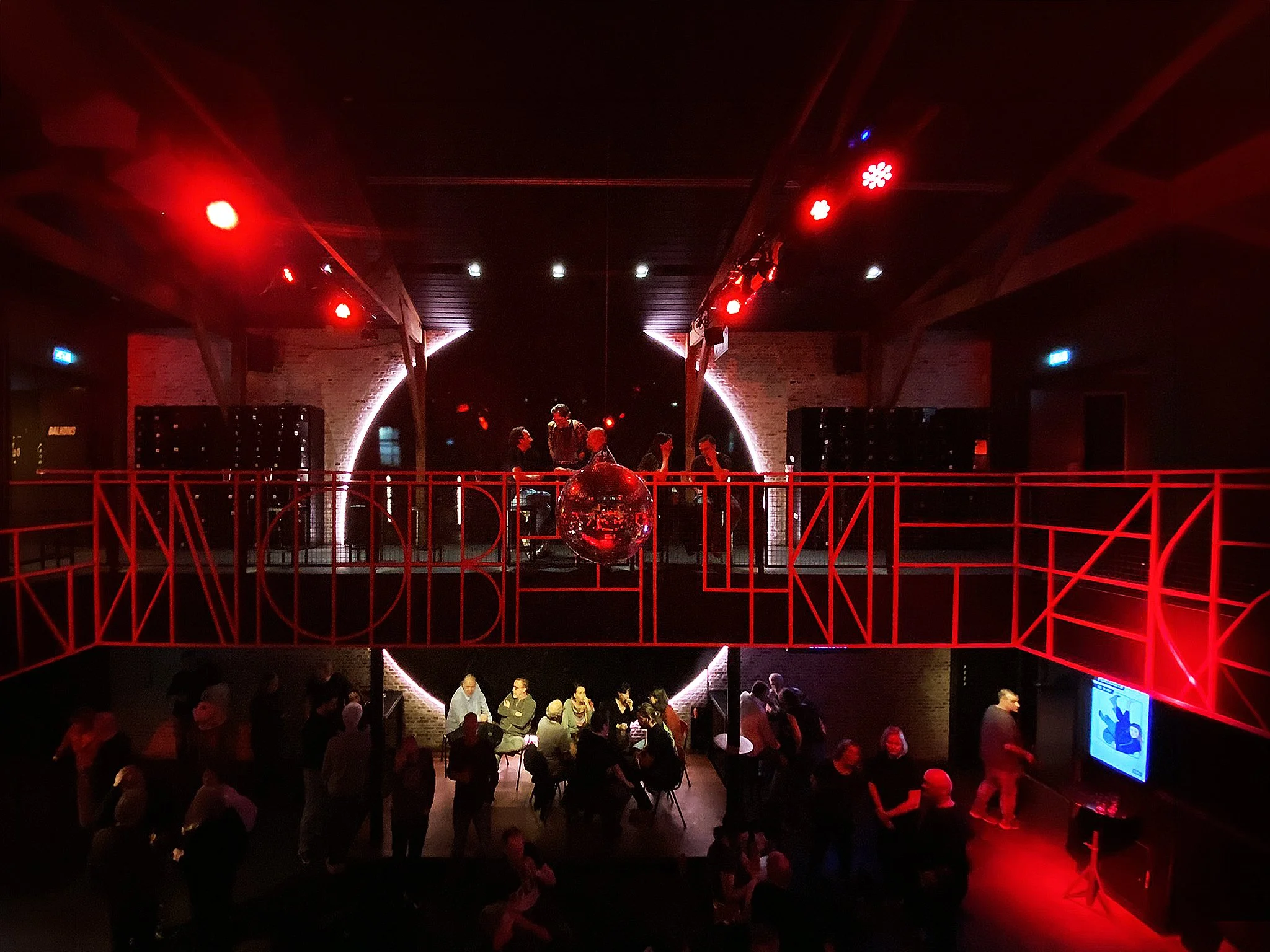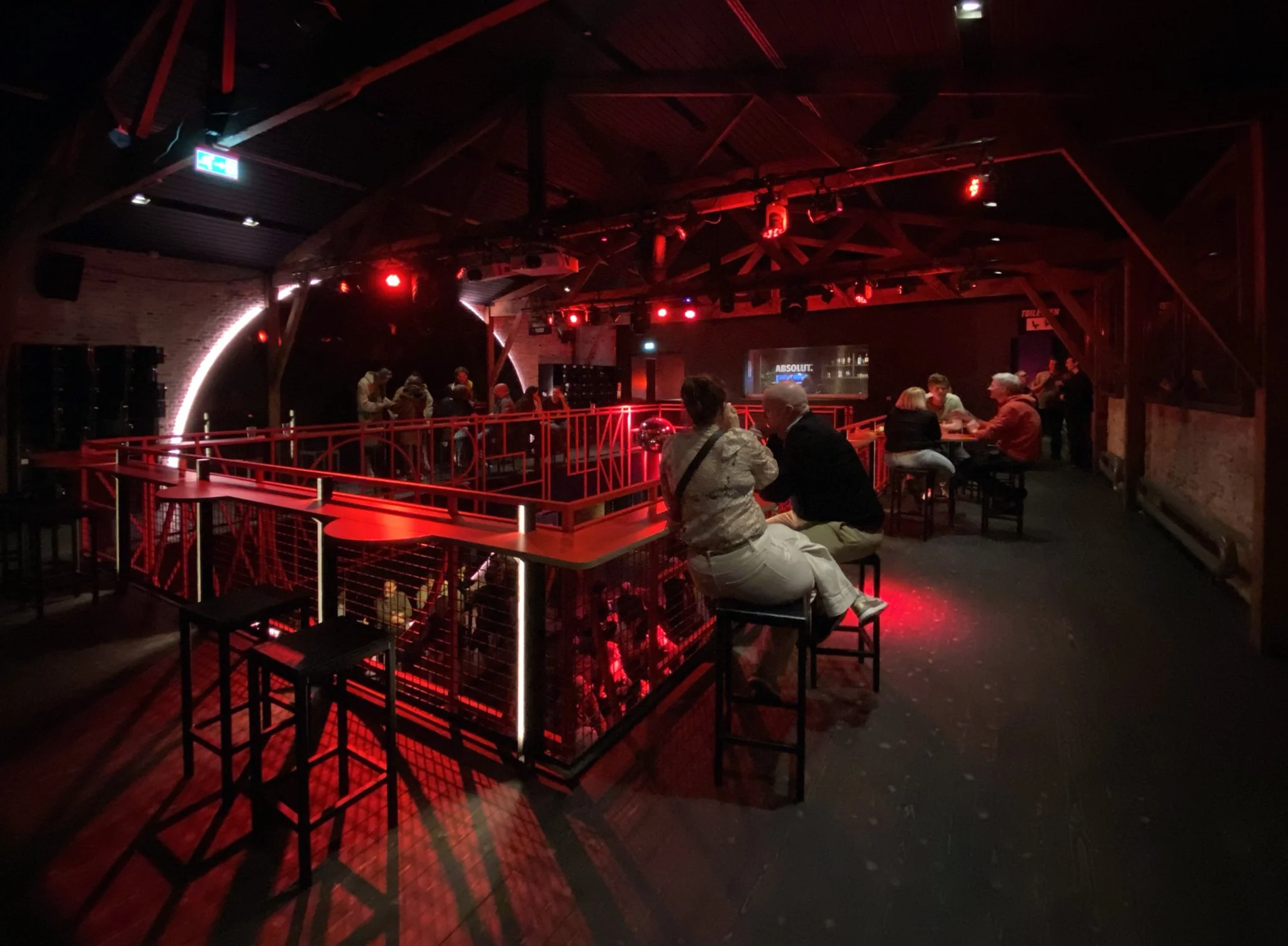 Met de Nobel heeft Leiden in 2014 een geweldig poppodium gekregen met twee fijne zalen. De hoge foyer van het muziekcomplex had aanvankelijk een mooie brede trap maar werd vooral beleefd als een functioneel verkeersgebied. De eerste ingreep bedacht de Nobel zelf: door de trap weg te nemen ontstond een ruimte voor een nieuw podium voor kleine optredens. Maar de uitstraling bleef afstandelijk, en het entresol leek er niet bij te oren. Om de potentie van de ruimte ten behoeve van events en clubavonden te benutten vroeg de Nobel ons een ontwerp te maken dat het gebruik en de beleving zou verbeteren.